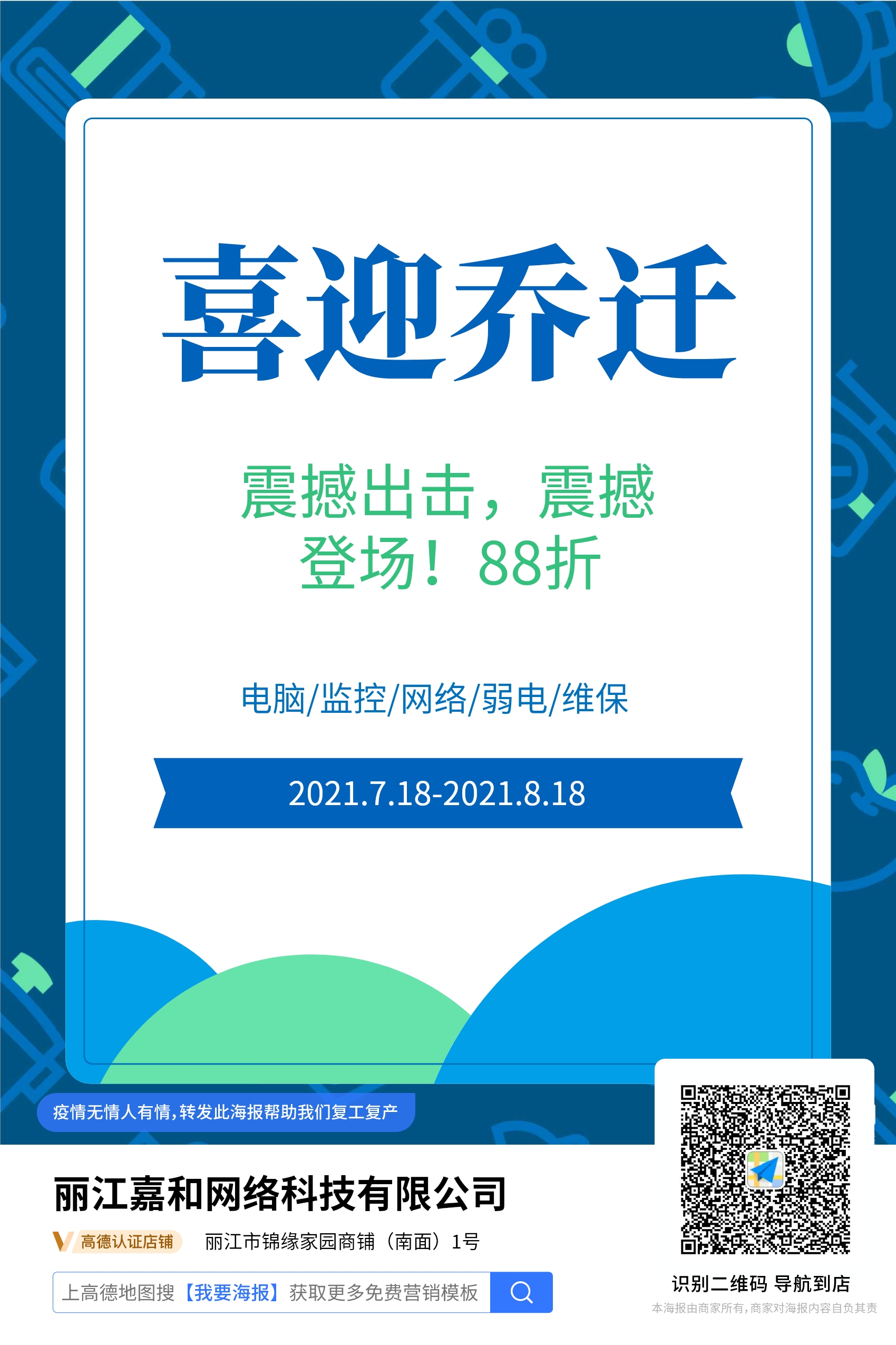 我司因業(yè)務發(fā)展需要,現公司地址搬遷至麗江市錦緣家園1號商鋪嘉和科技公司。有何疑問,歡迎來電。