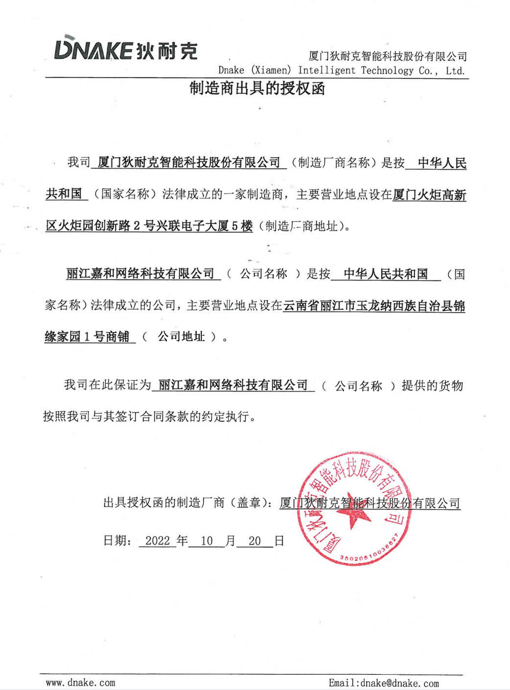 熱烈慶祝我司與狄耐克達(dá)成戰(zhàn)略合作(授權(quán)函)