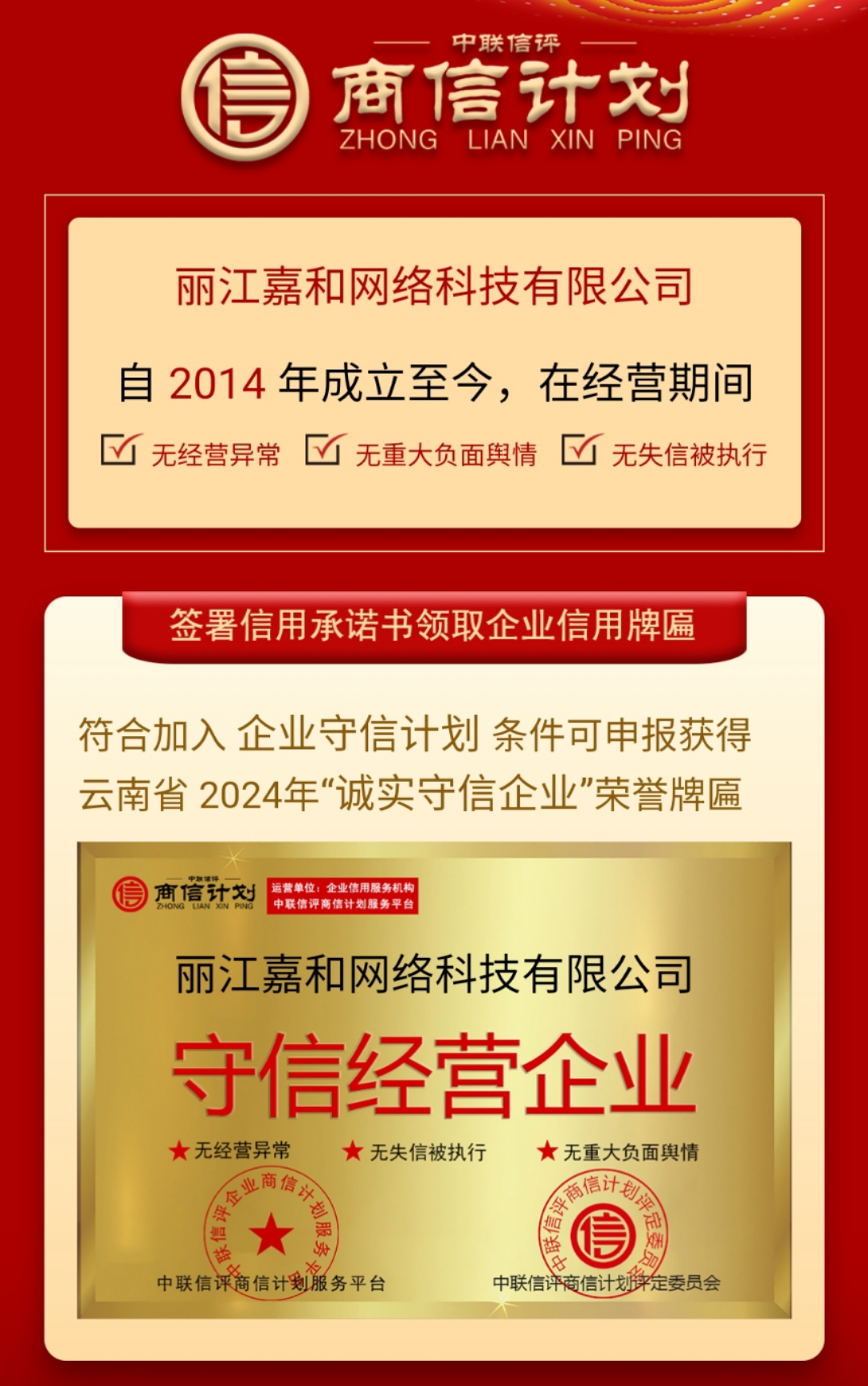 熱烈慶祝我司榮獲云南省2024誠(chéng)實(shí)守信企業(yè)榮譽(yù)