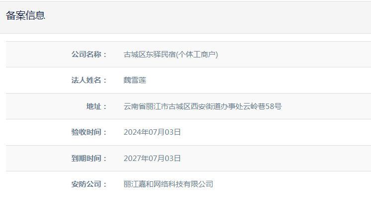 關于麗江東巴云物業服務管理有限公司電子監控安防合格證下證通知