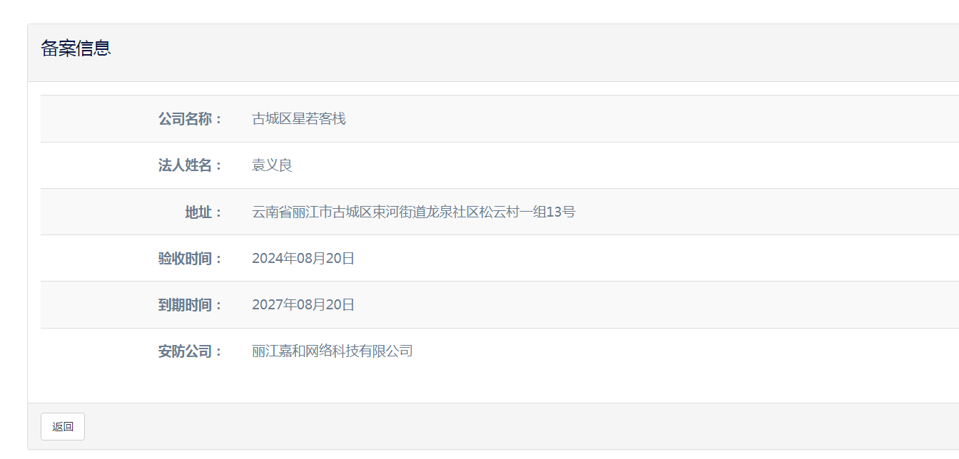 關于麗江和府酒店有限公司英迪格酒店電子監控安防合格證下證通知