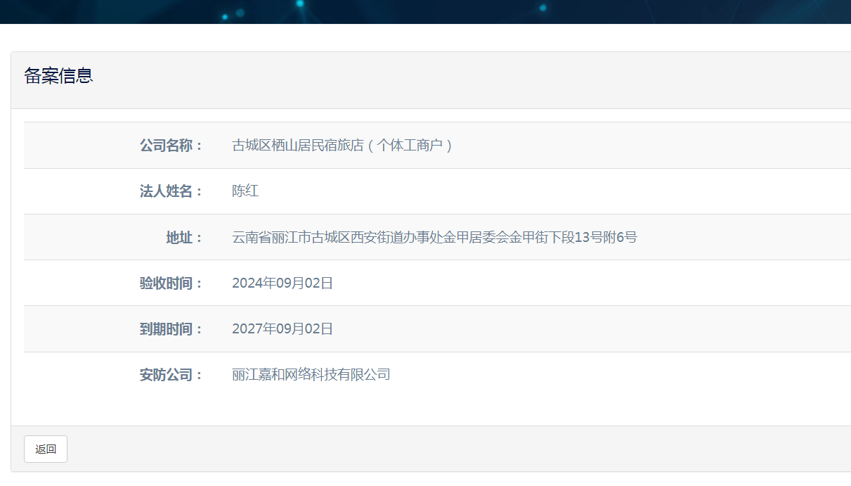 關(guān)于古城區(qū)棲山居民宿旅店(個體工商戶)電子監(jiān)控安防合格證下證通知