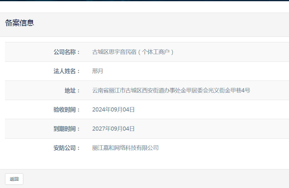 關于古城區思宇音民宿(個體工商戶)電子監控安防合格證下證通知