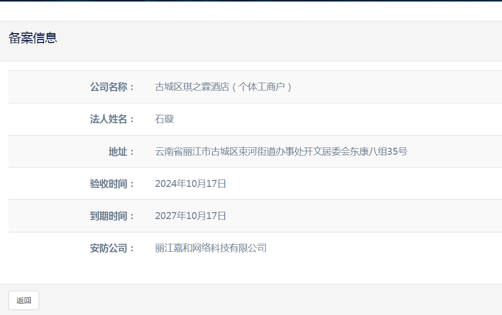 關于古城區(qū)琪之霖酒店(個體工商戶)電子監(jiān)控安防合格證下證通知
