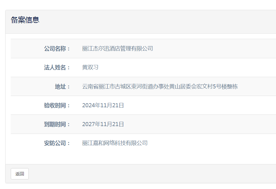 關于麗江杰爾迅酒店管理有限公司電子監控安防合格證下證通知
