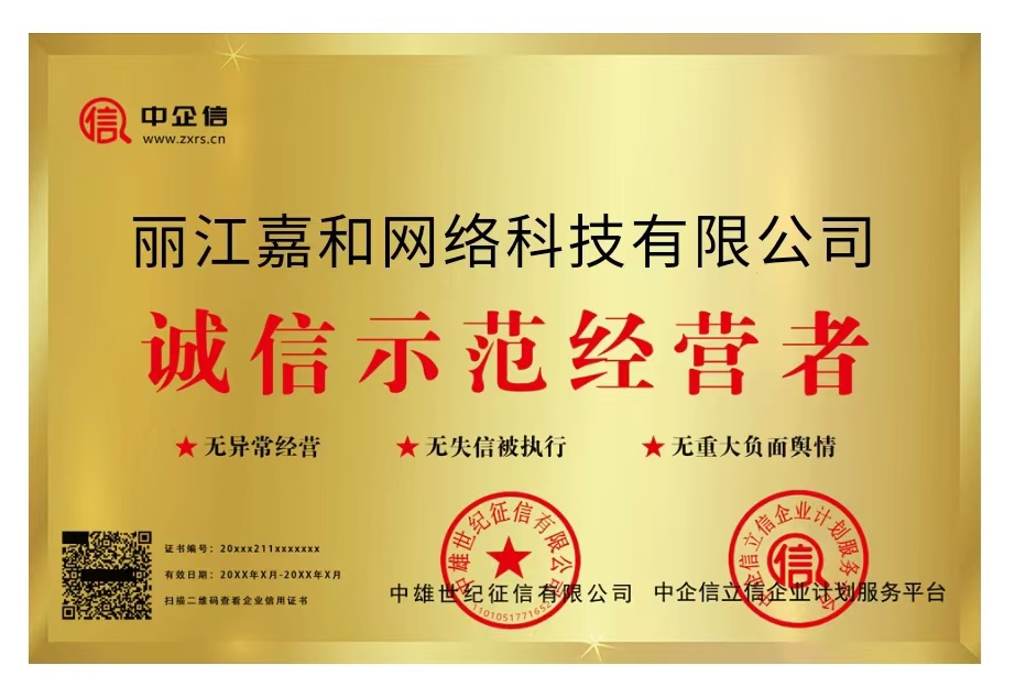 熱烈慶祝我司榮獲誠(chéng)信示范經(jīng)營(yíng)者