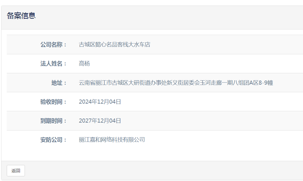 關于麗江和府酒店有限公司英迪格酒店電子監控安防合格證下證通知