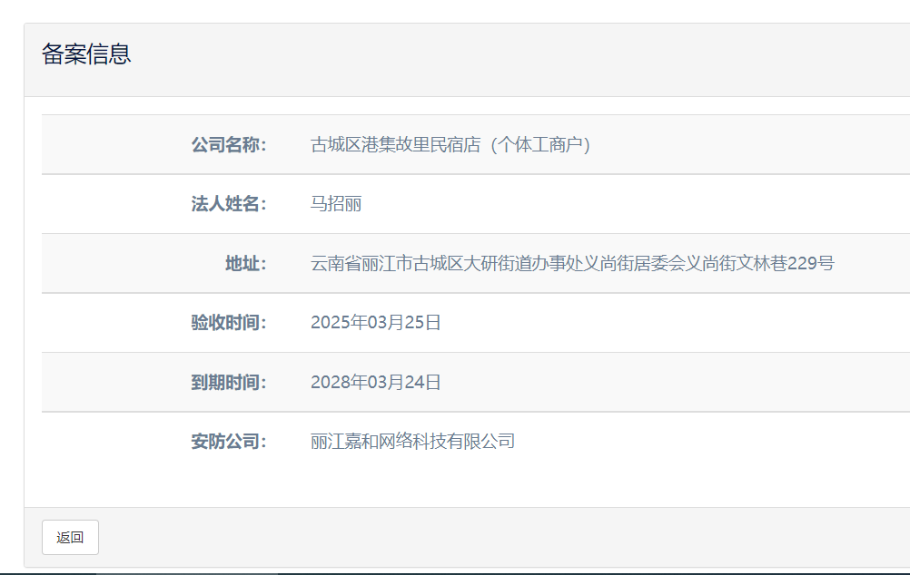 關(guān)于古城區(qū)港集故里民宿店(個(gè)體工商戶)電子監(jiān)控安防合格證下證通知