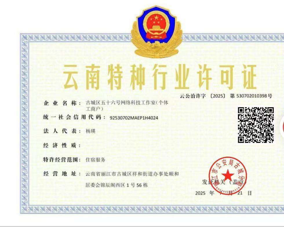 關于麗江和府酒店有限公司英迪格酒店電子監控安防合格證下證通知