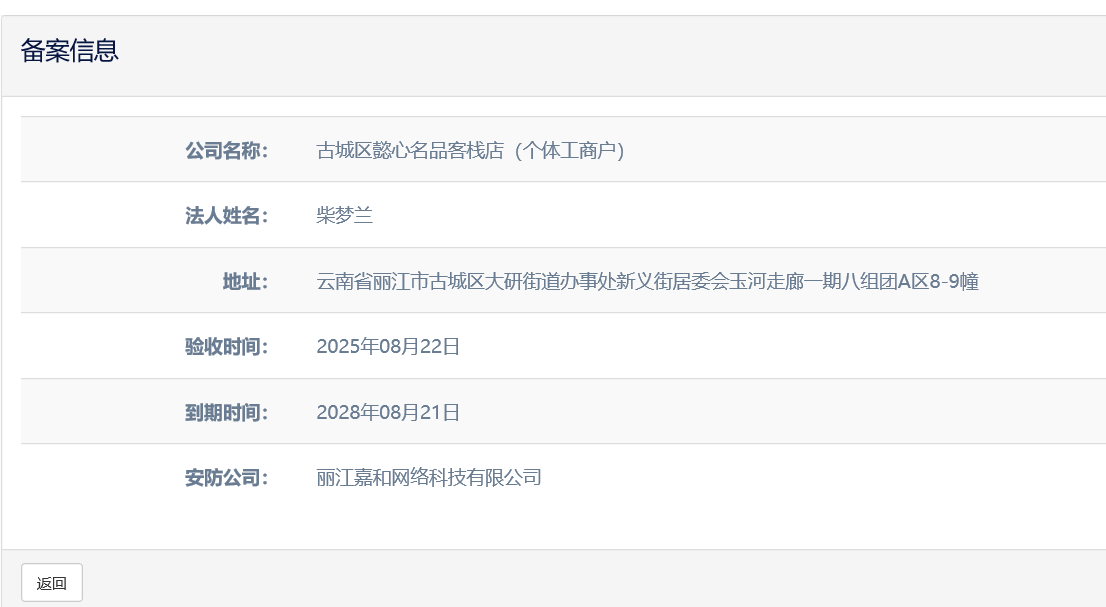 關(guān)于麗江和府酒店有限公司英迪格酒店電子監(jiān)控安防合格證下證通知